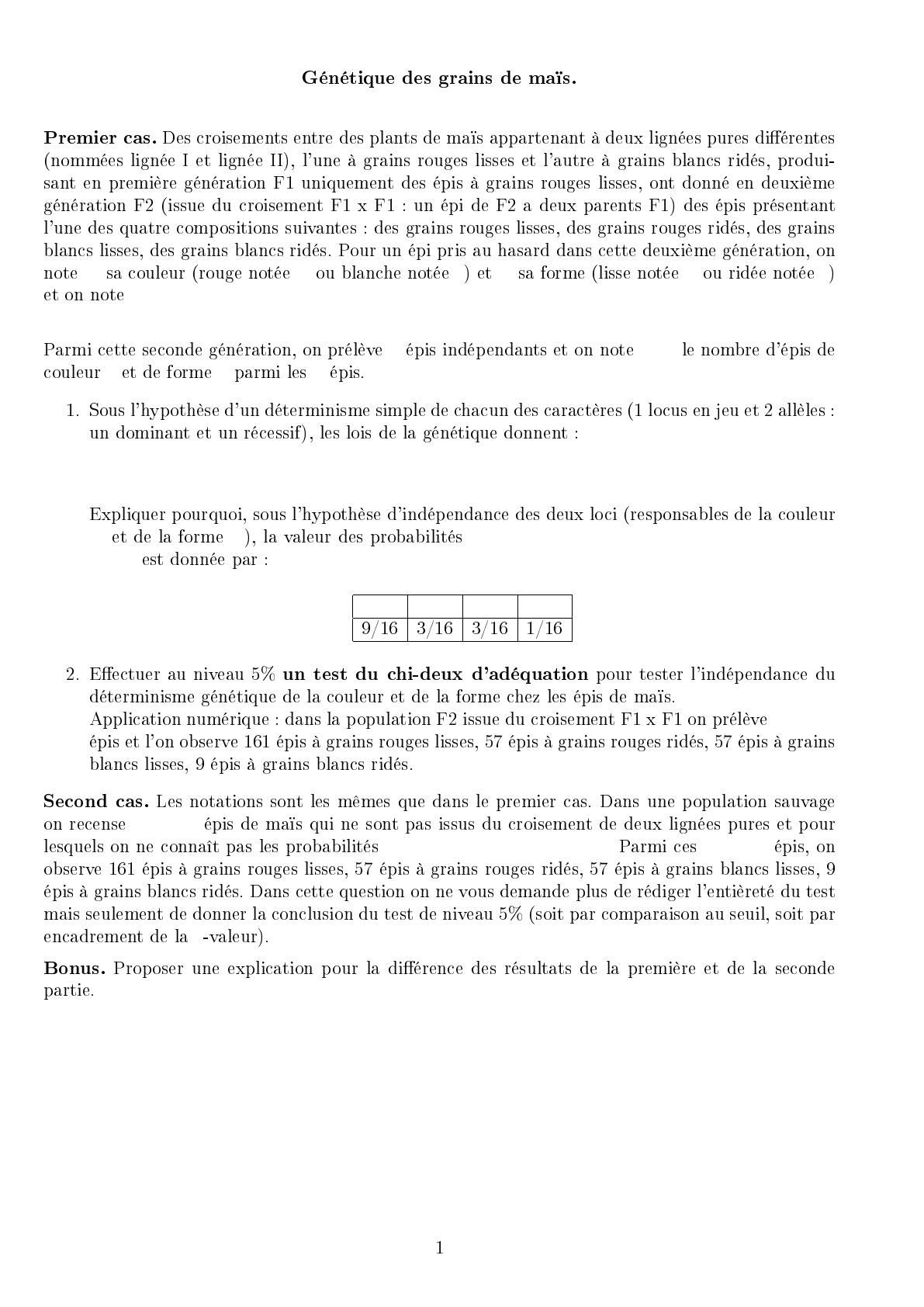 Génétique des grains de maïs : Test du Chi-deux et Indépendance