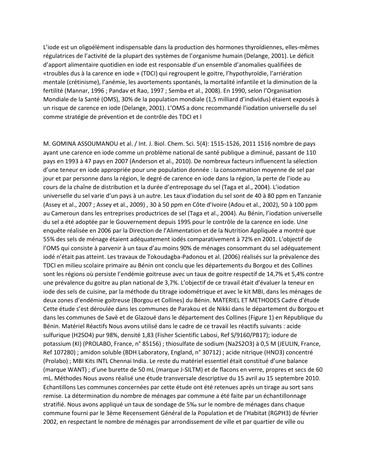 M. GOMINA ASSOUMANOU et al. / Int. J. Biol. Chem. Sci. 5(4): 1515-1526, 2011 1520 Tableau 3: Valeurs