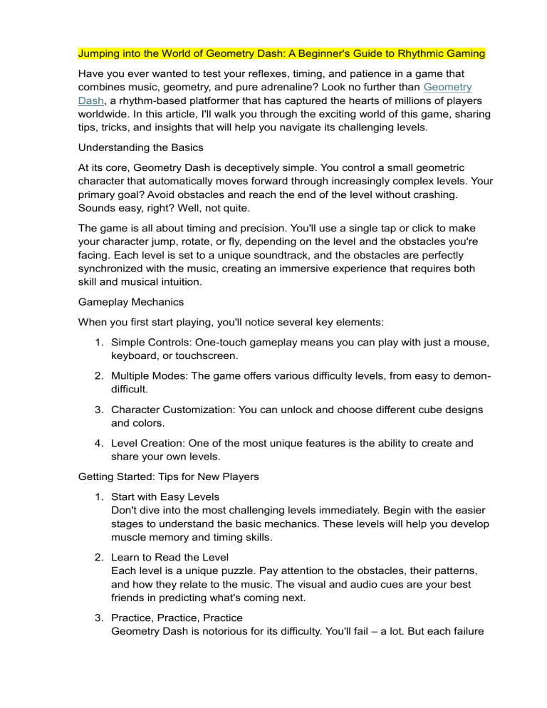 Jumping into the World of Geometry Dash: A Beginner's Guide to Rhythmic Gaming