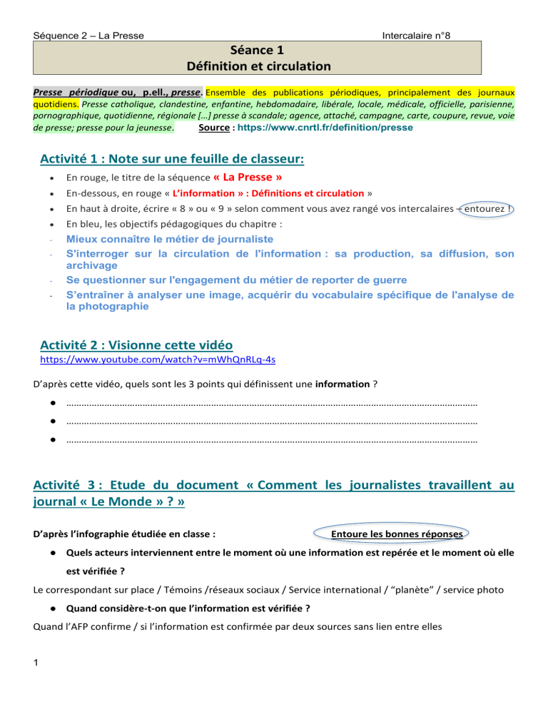 Activité 3 : Etude du document « Comment les journalistes travaillent au