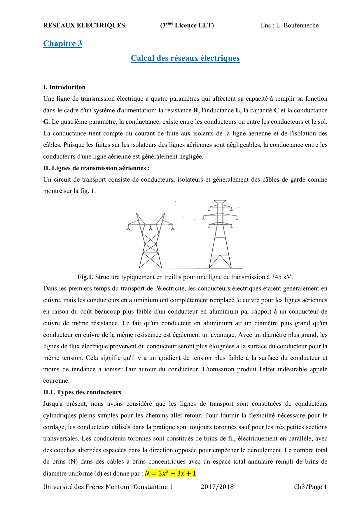 RESEAUX ELECTRIQUES (3éme Licence ELT) Ens : L. Boufenneche
