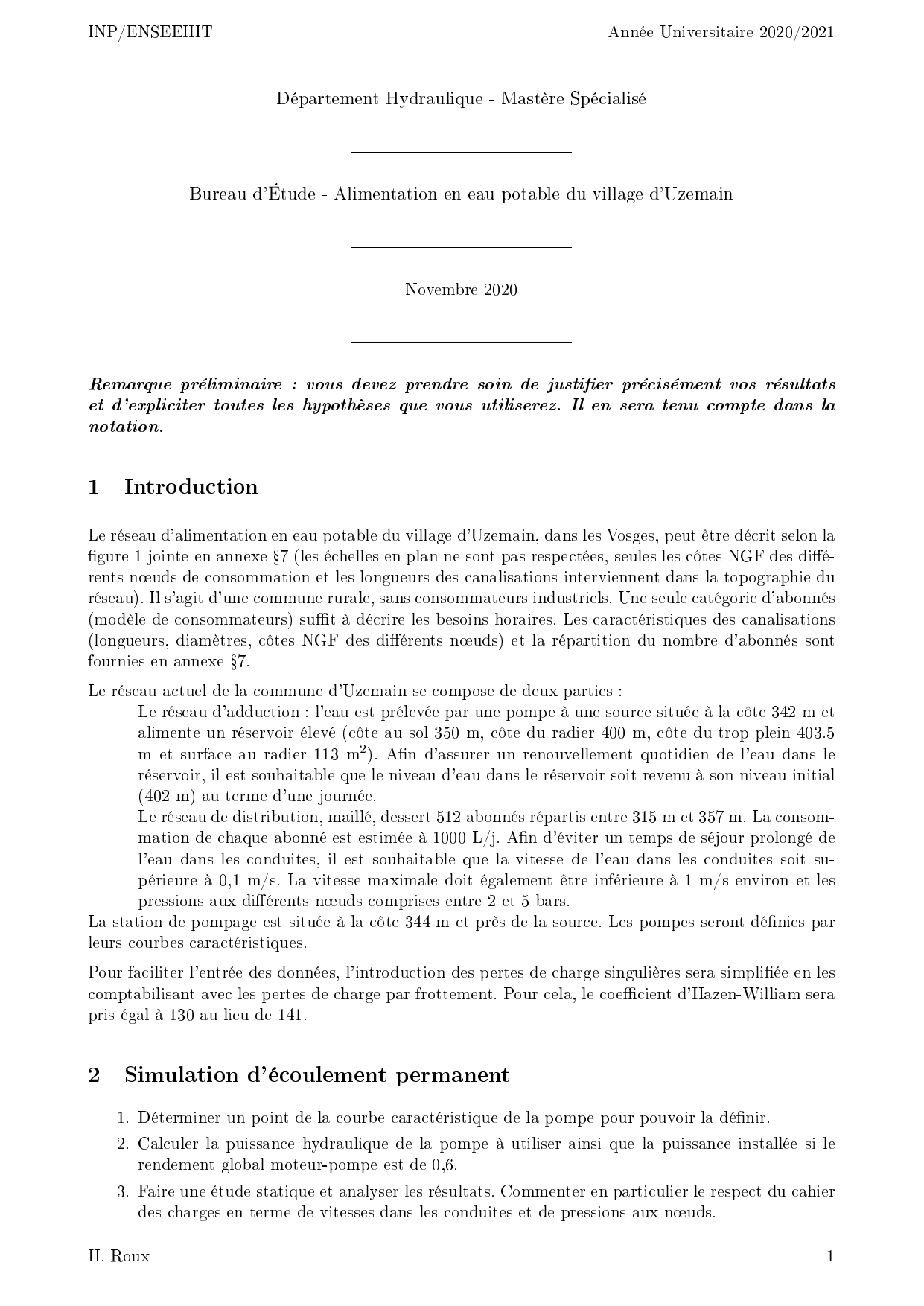 Étude du réseau d'eau d'Uzemain - INP/ENSEEIHT