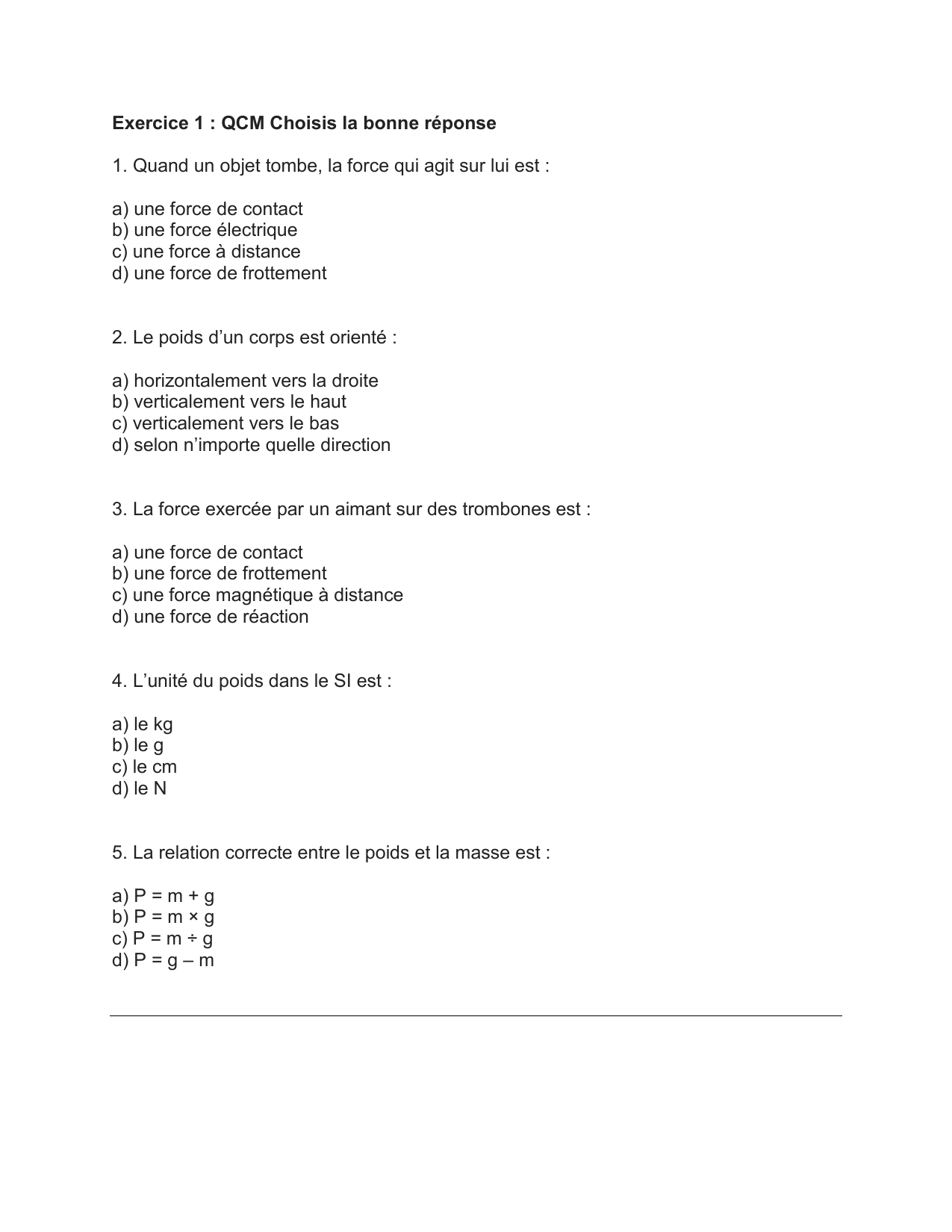 2. Cite les 2 types de forces et donne un exemple pour chaque.