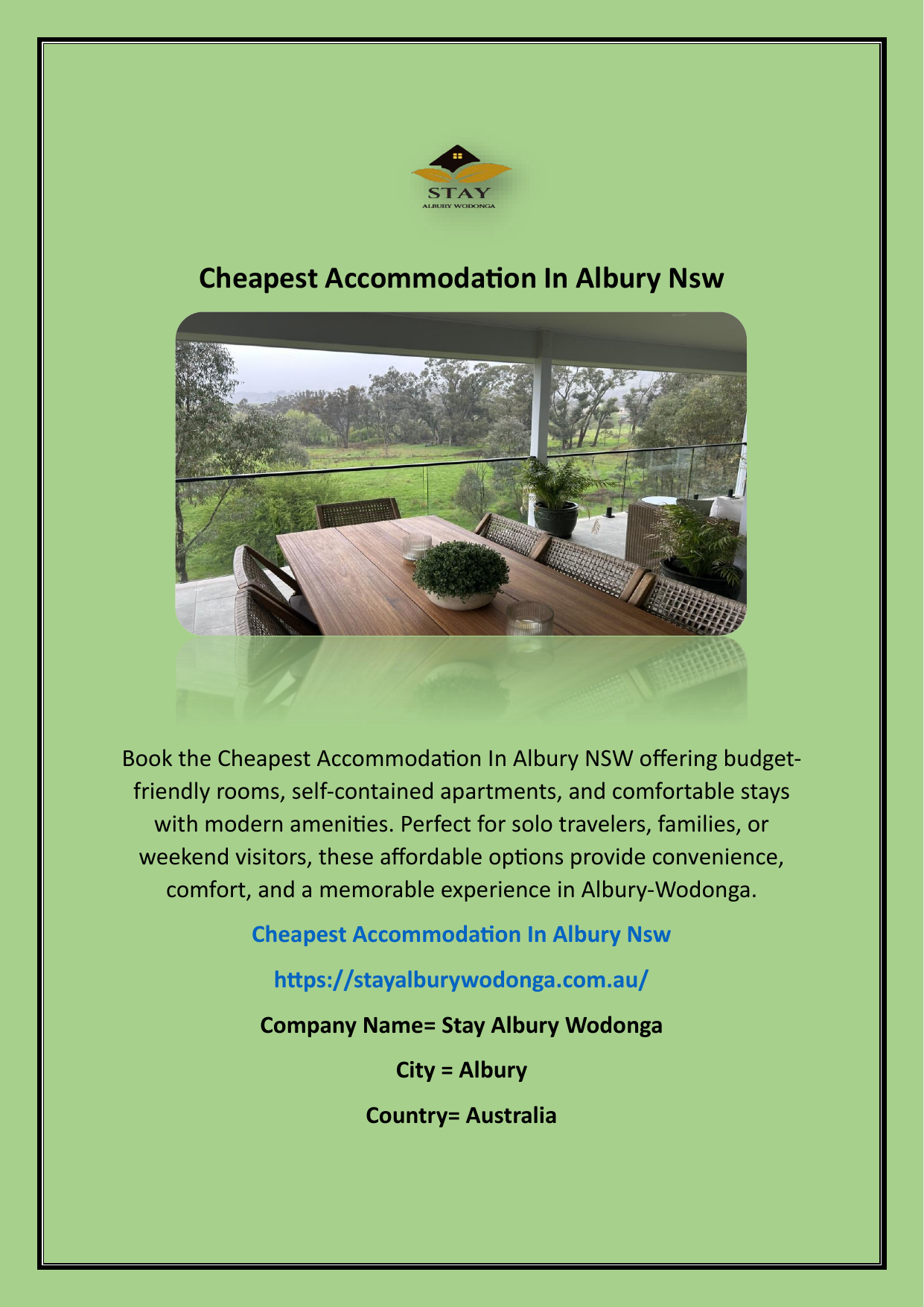 Book the Cheapest Accommodaon In Albury NSW oering budget-