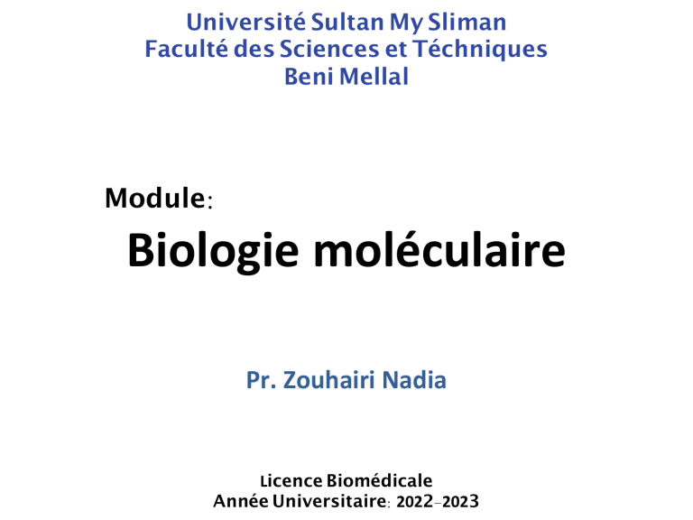 !"a biologie moléculaire: