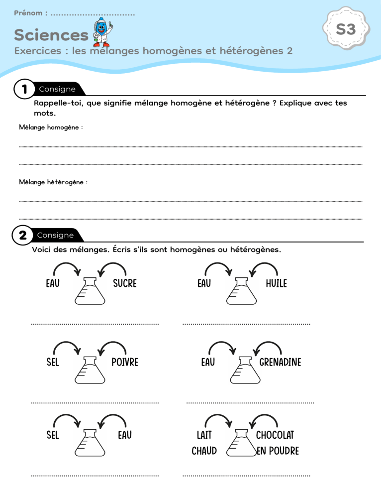 Exercices : les mélanges homogènes et hétérogènes 2