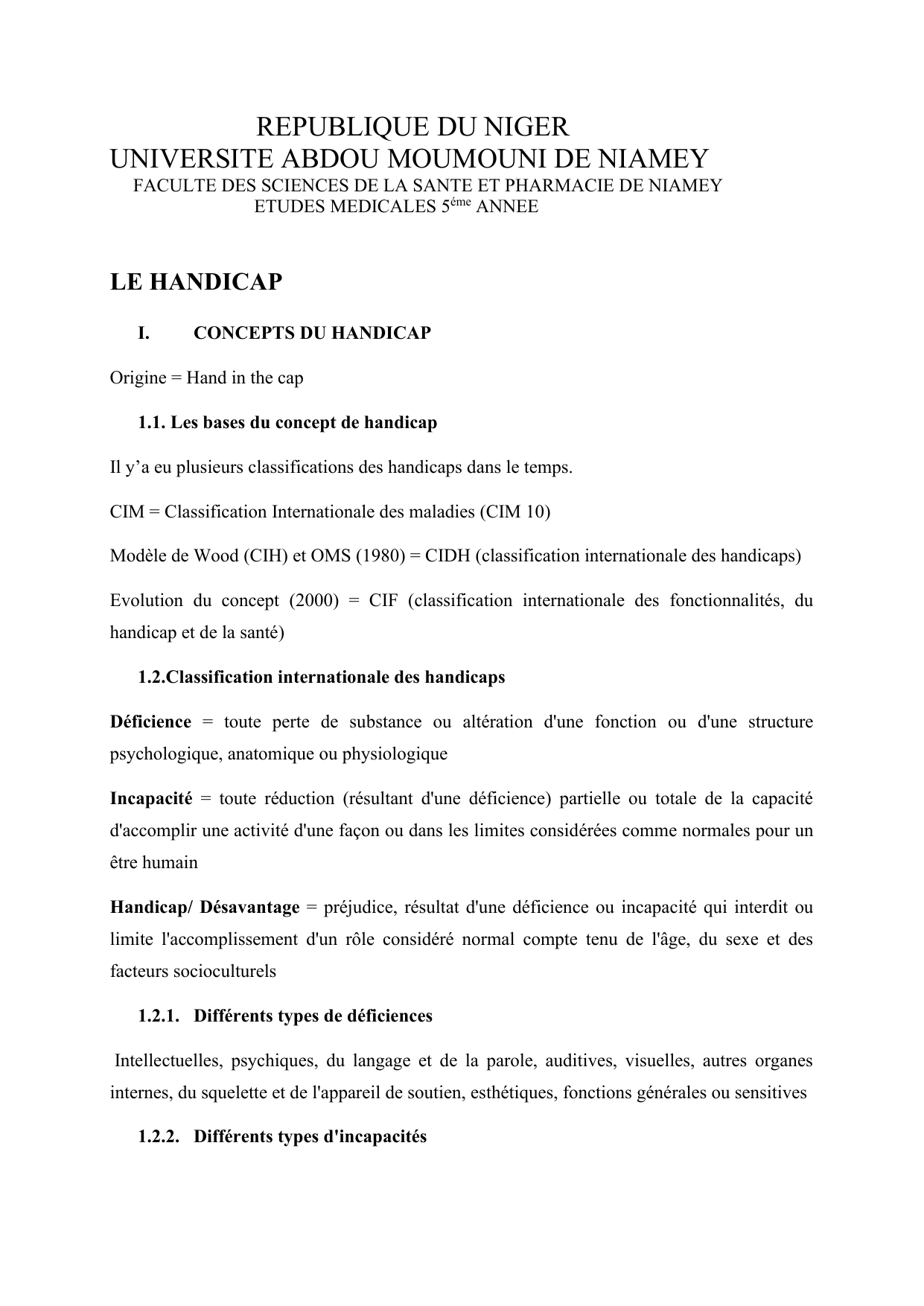 CIH : Production du handicap très médical, avec des termes négatifs, rôle néfaste dans le