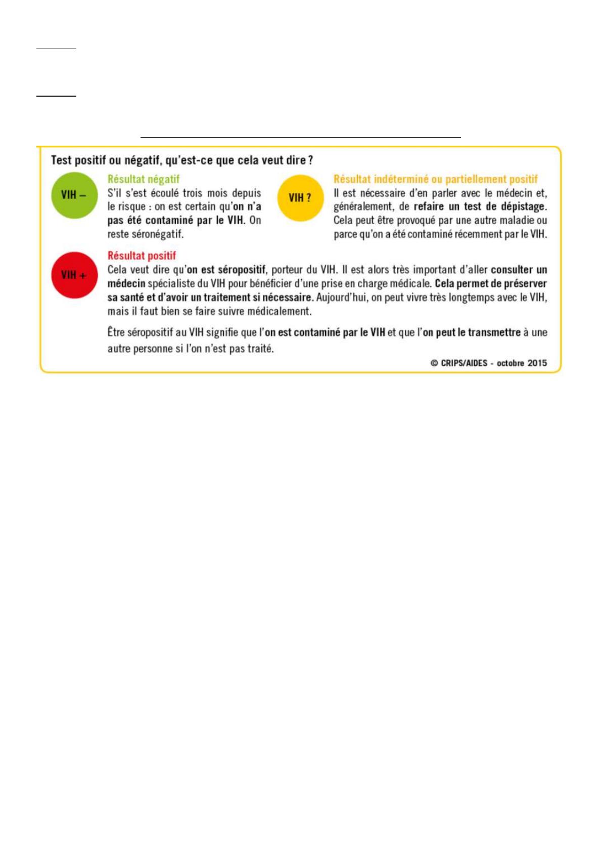 Contamination du partenaire par le virus possible ? □ Oui □ Non