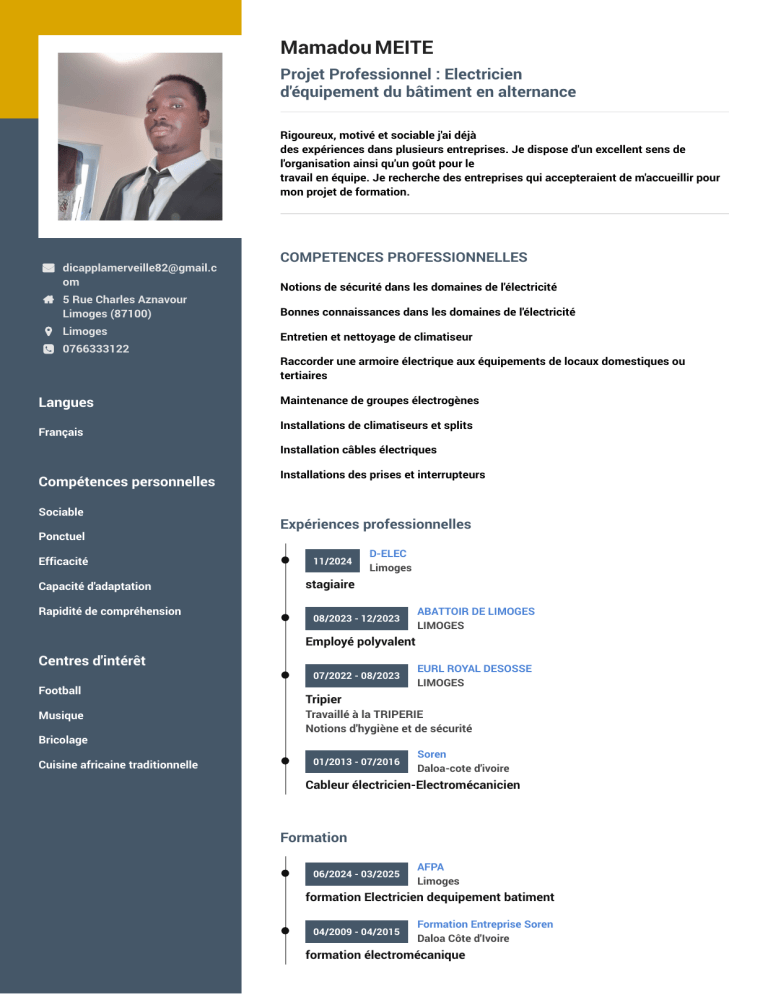 des expériences dans plusieurs entreprises. Je dispose d'un excellent sens de