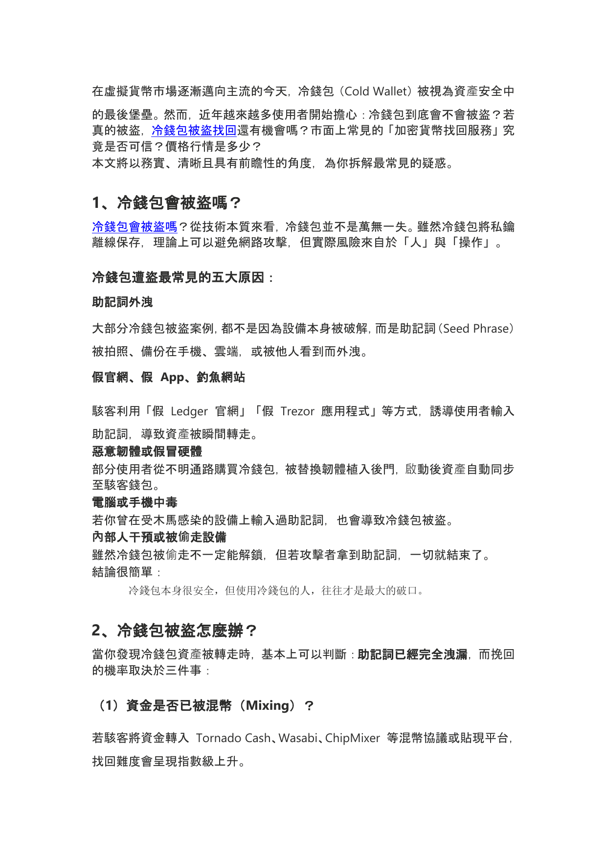真的被盜,冷錢包被盜找回還有機會嗎?市面上常見的「加密貨幣找回服務」究