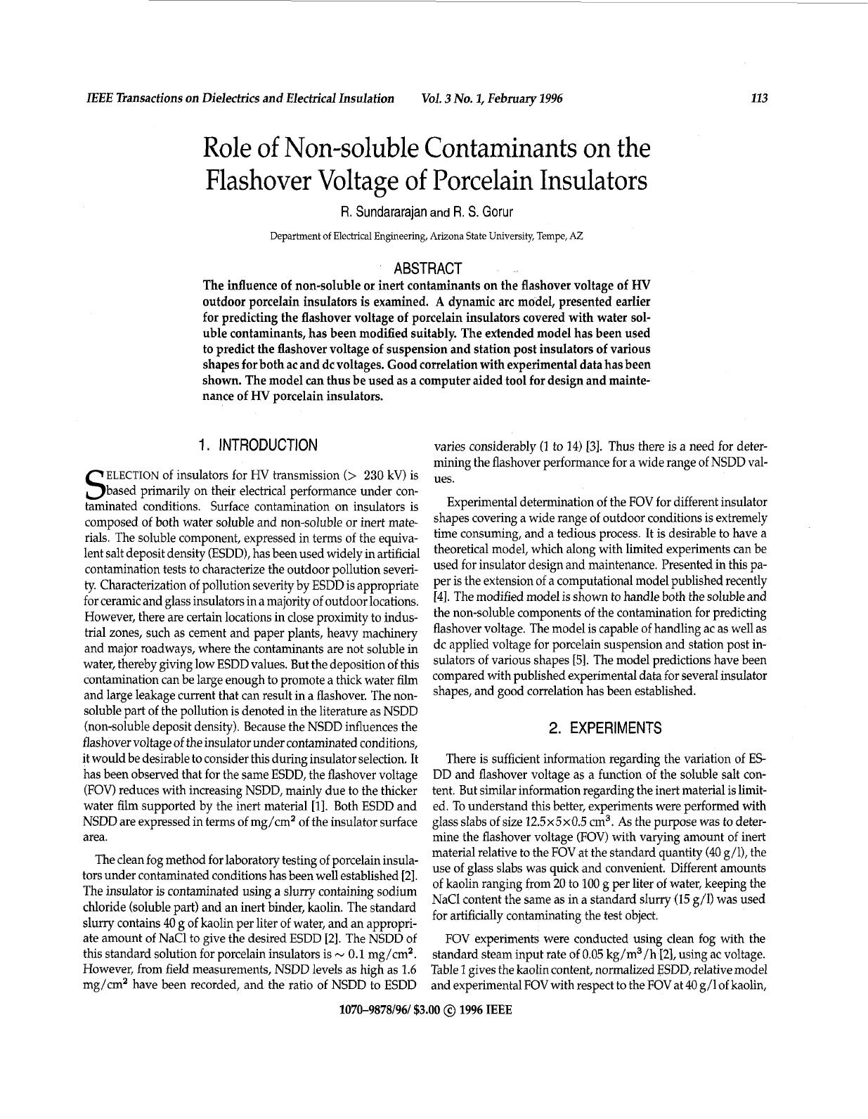 The influence of non-soluble or inert contaminants on the flashover voltage of