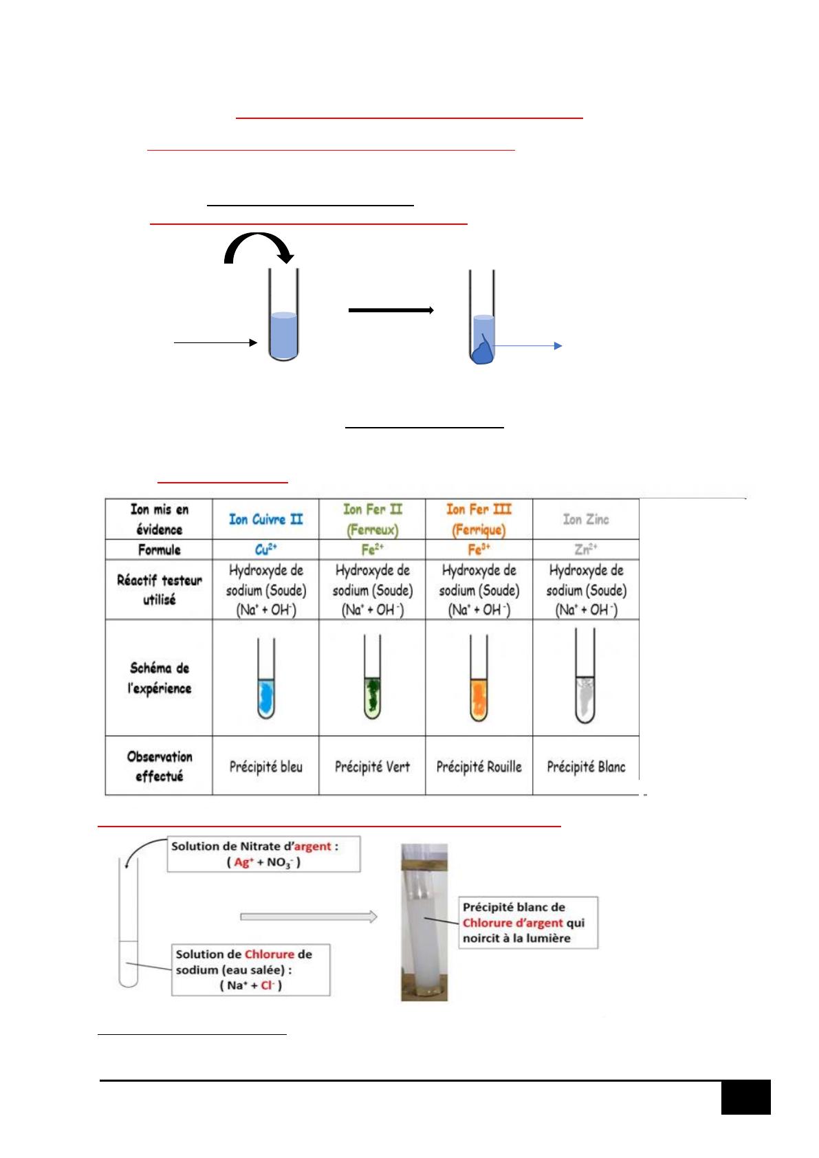 • Ajout de soude dans un prélèvement de la solution incolore : apparition d’un précipité blanc
