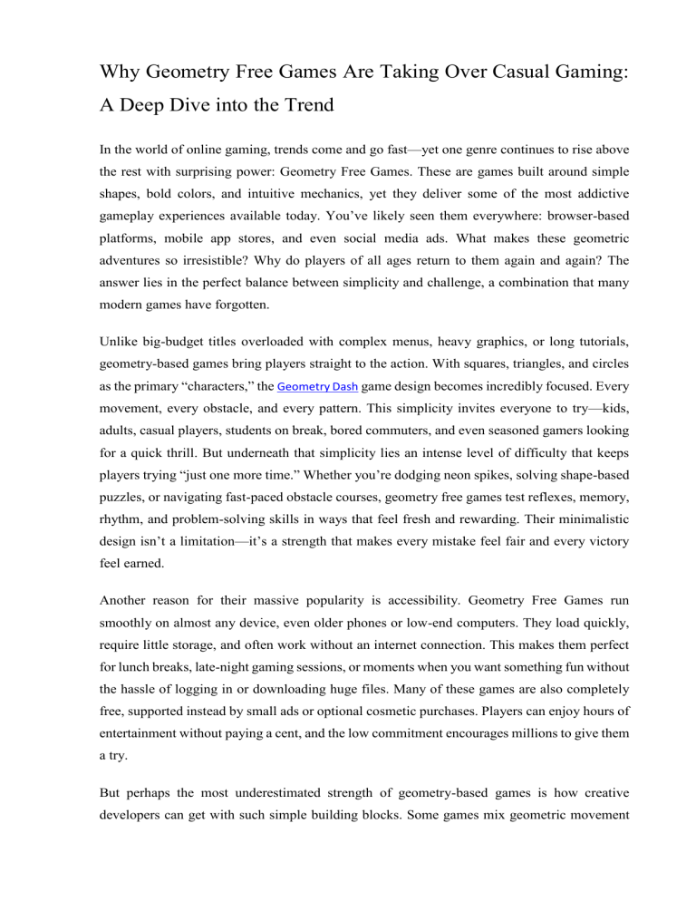 Why Geometry Free Games Are Taking Over Casual Gaming: