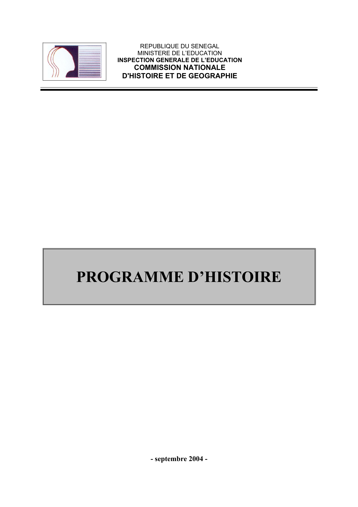 Programme consolidé d’Histoire – septembre 2004.