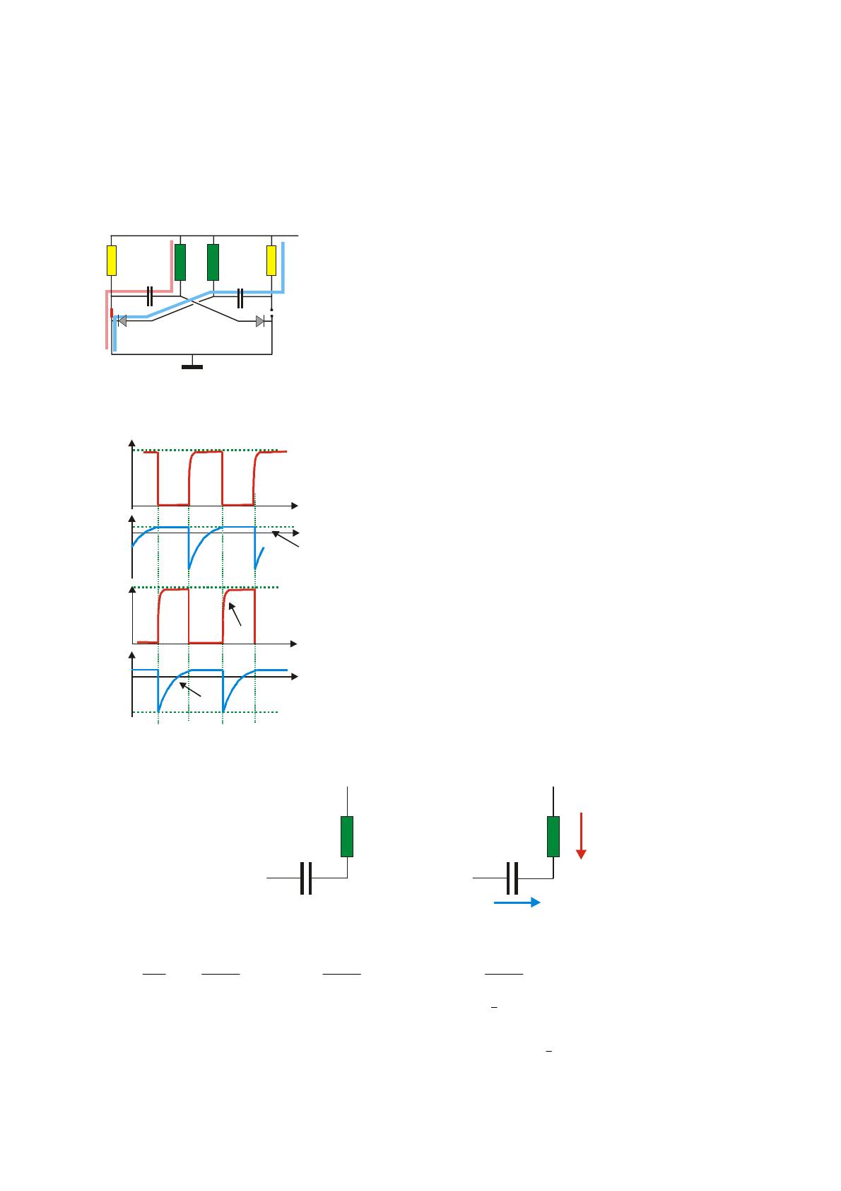sans effet sur T2 qui est déjà bloqué. Le potentiel VC1 du collecteur du transistor T1 croît.