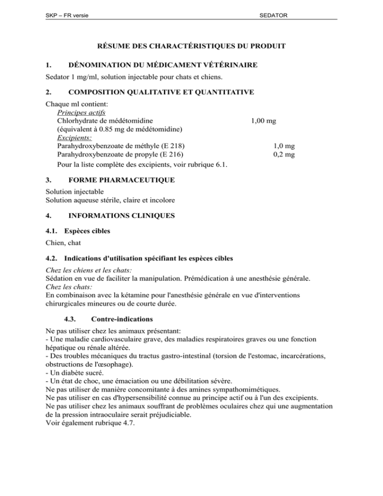 mg) de chlorhydrate de médétomidine chez le chien et à 2.5 fois chez le chat.