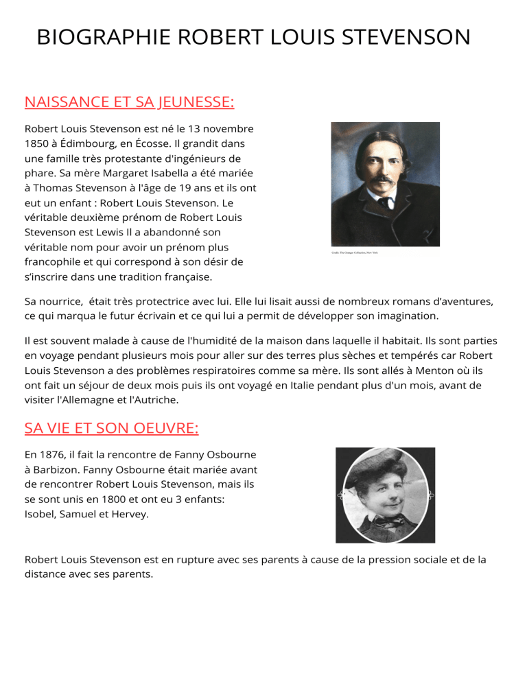 BIOGRAPHIE ROBERT LOUIS STEVENSON