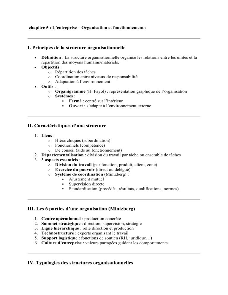 1. Taille de l’entreprise : plus elle est grande, plus la structure est complexe