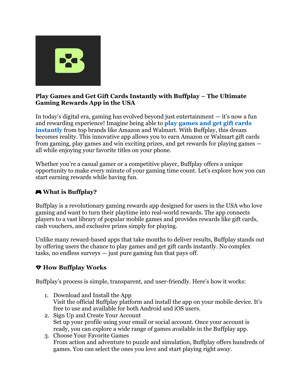Buffplay is a revolutionary gaming rewards app designed for users in the USA who love