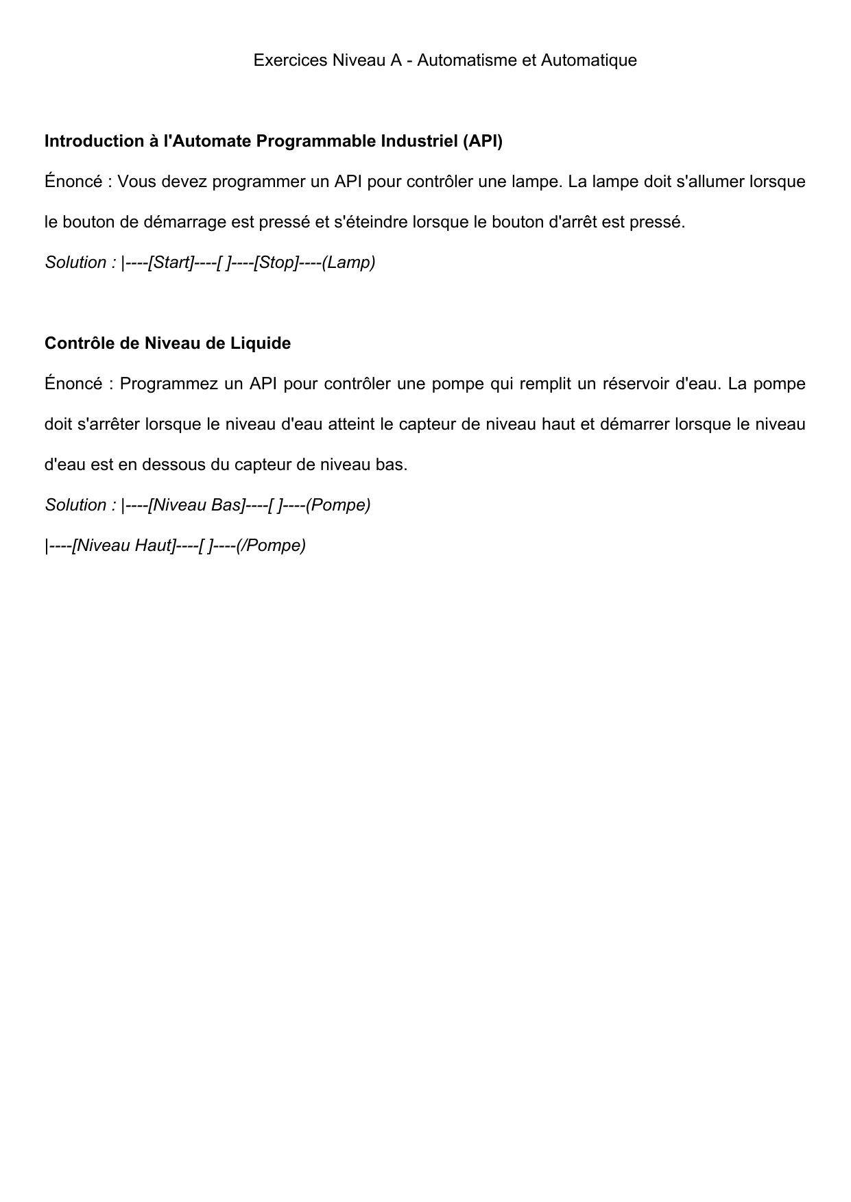 Solution : |----[Niveau Bas]----[ ]----(Pompe)