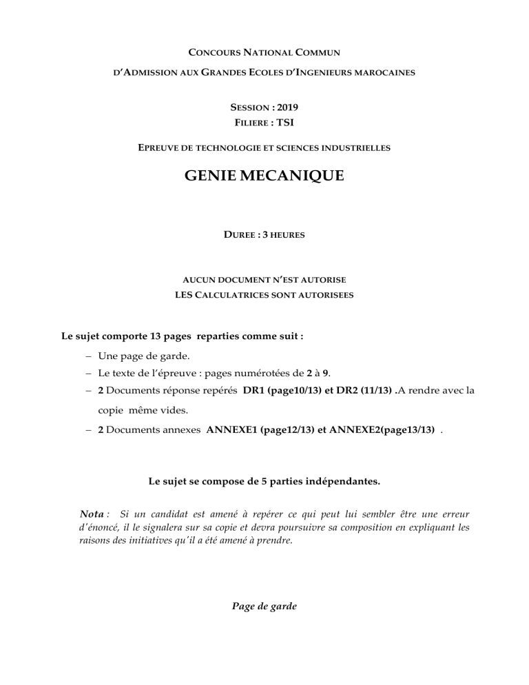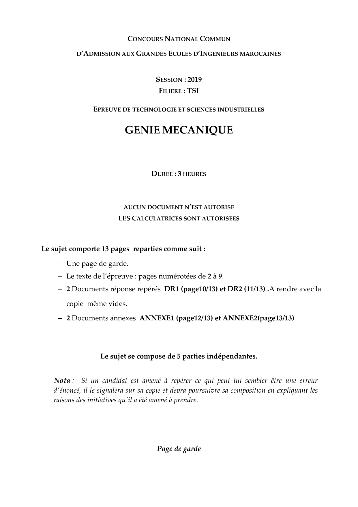 Question1‐5:Donnerlaformedutorseurd’actionmécaniquetransmissibleparcette