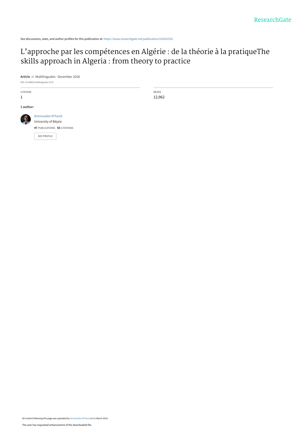 L’approche par les compétences en Algérie : de la théorie à la pratique
