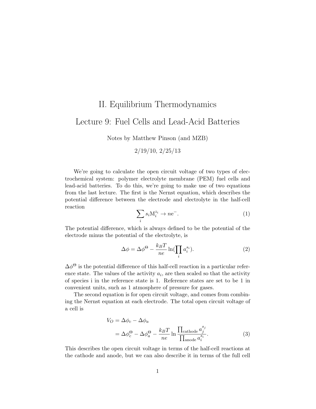 Lecture Fuel cells and lead-acid batteries 10.626 (2011) Bazant