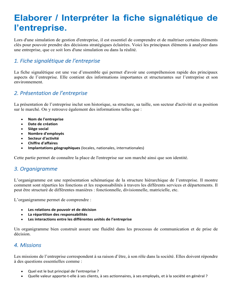 ses objectifs à long terme. Elle permet de définir le périmètre d’activité de l’entreprise, sa croissance, ses