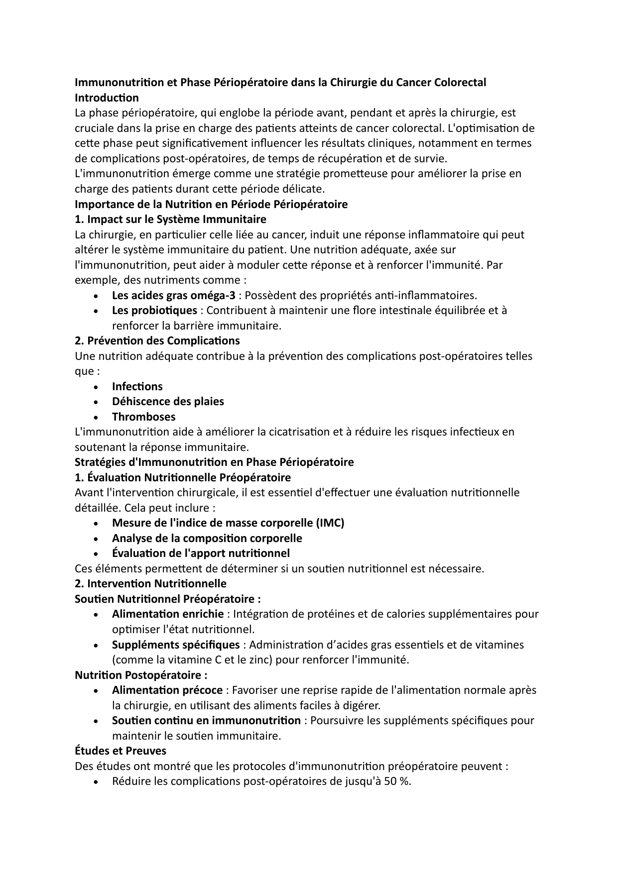 Stratégies d'Immunonutrion en Phase Périopératoire