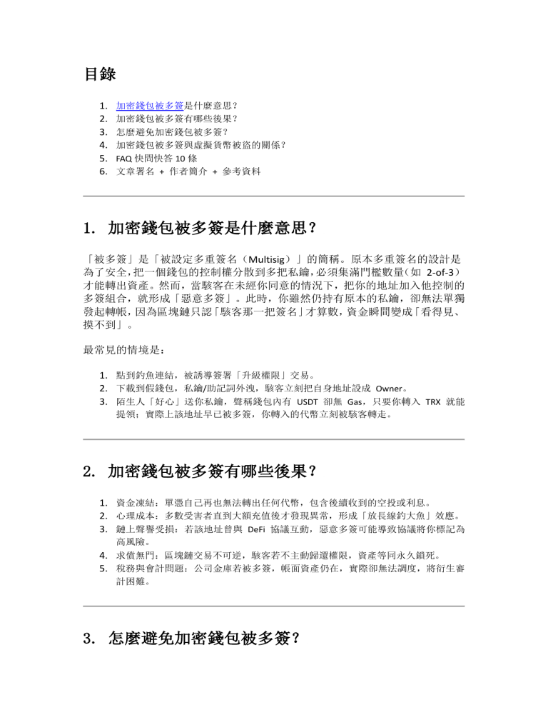1. Q:被多簽後還能救命嗎?A:若駭客尚未把權重設成 2/2,可立即用原私鑰把資產