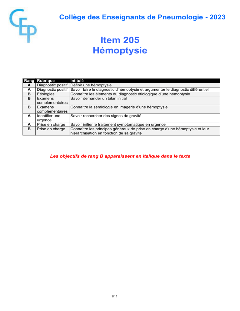 hémoptysie même de faible abondance témoigne le plus souvent d’une pathologie pulmonaire