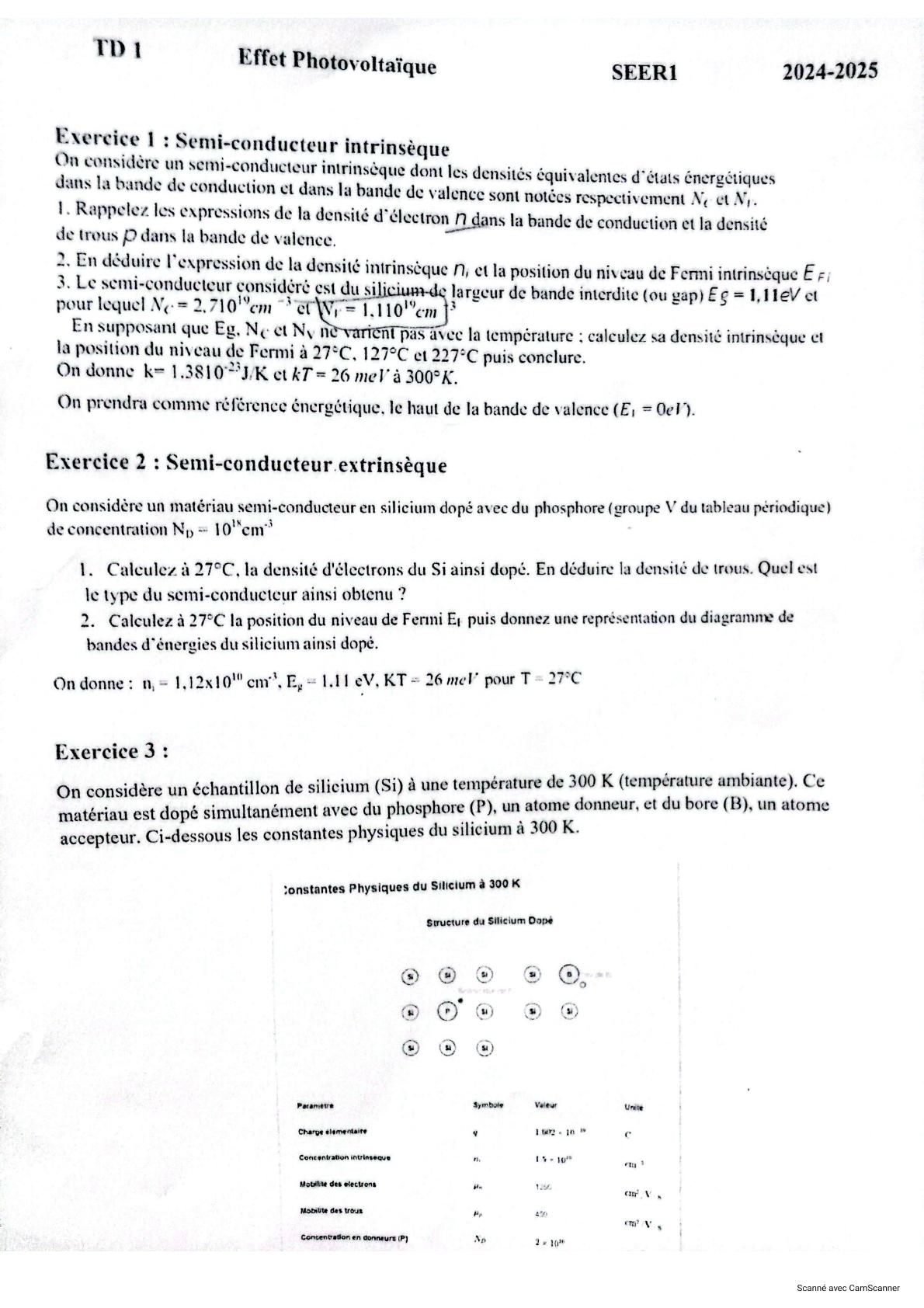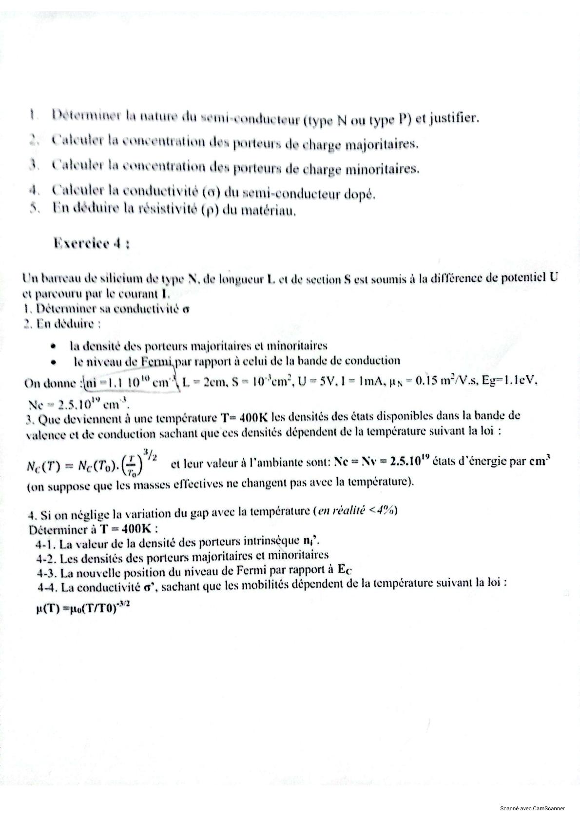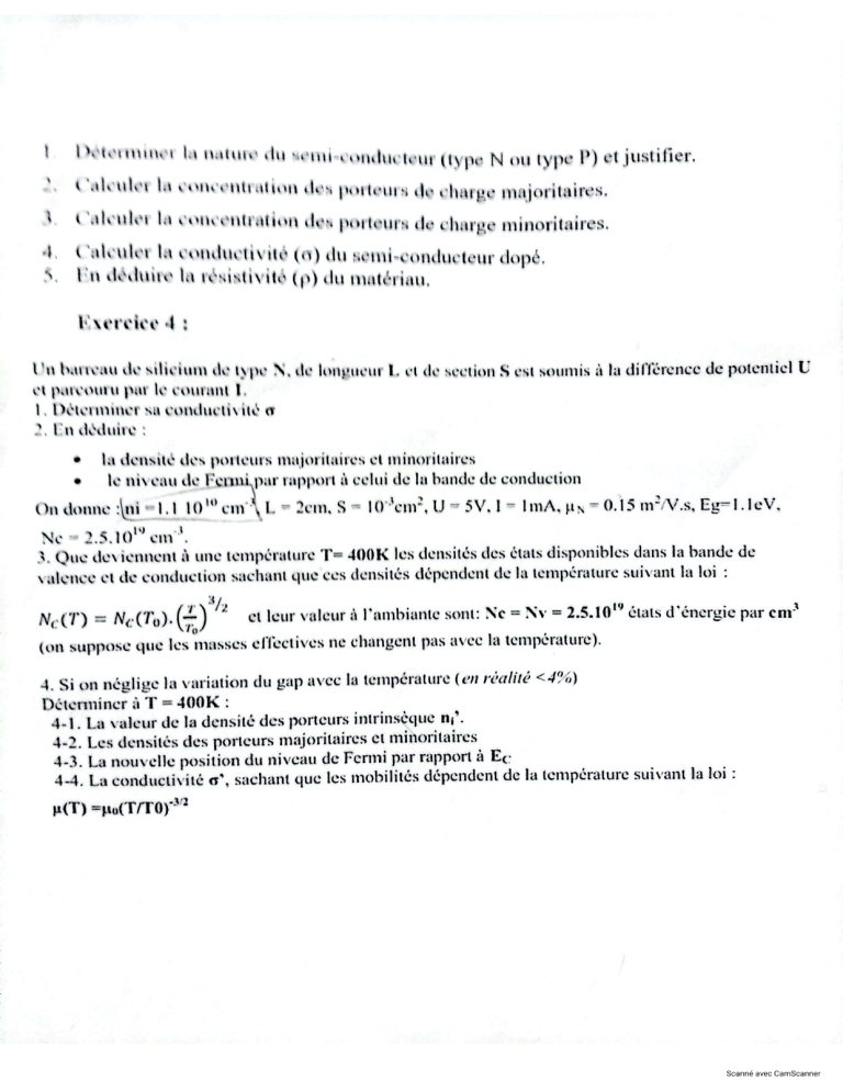 Exercices de Physique des Semi-conducteurs : Conductivité et Niveaux de Fermi