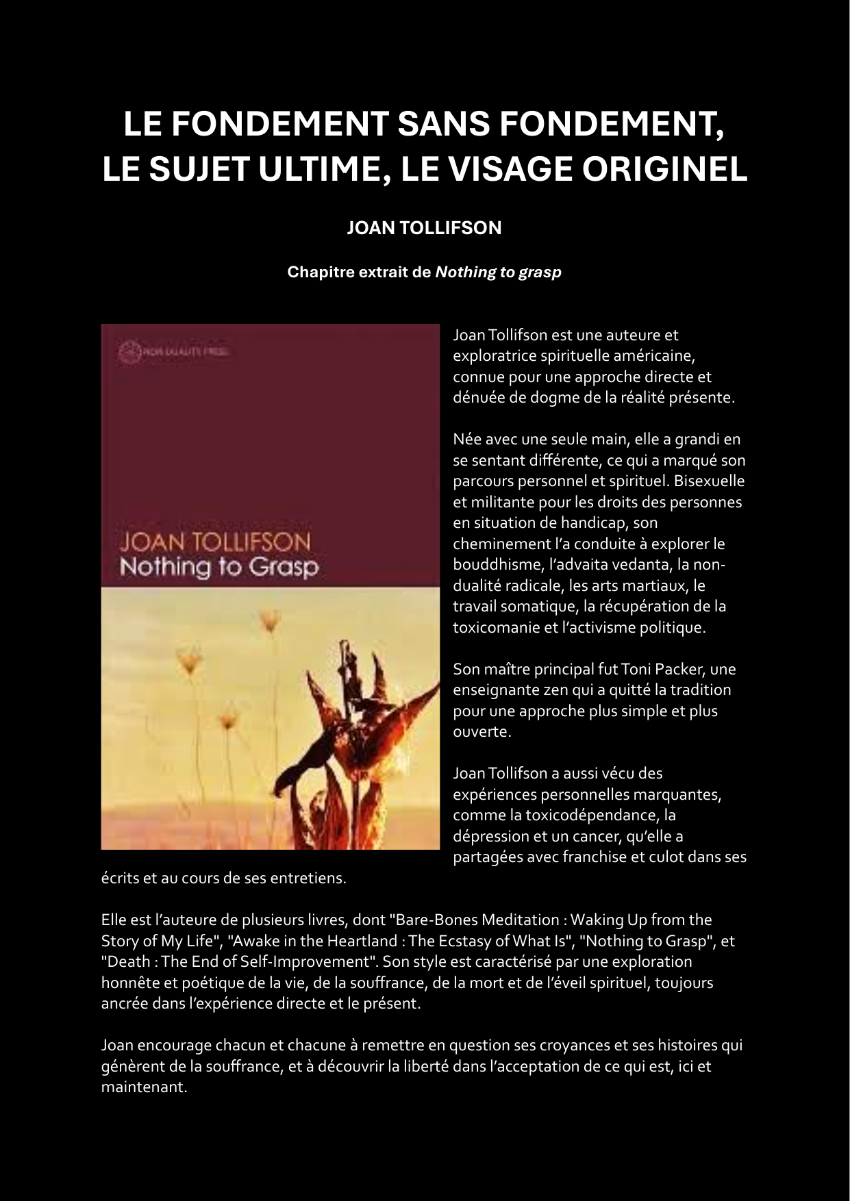 La Présence (ou le Vide) n’est pas « quelque chose « que l’on peut saisir. La Conscience