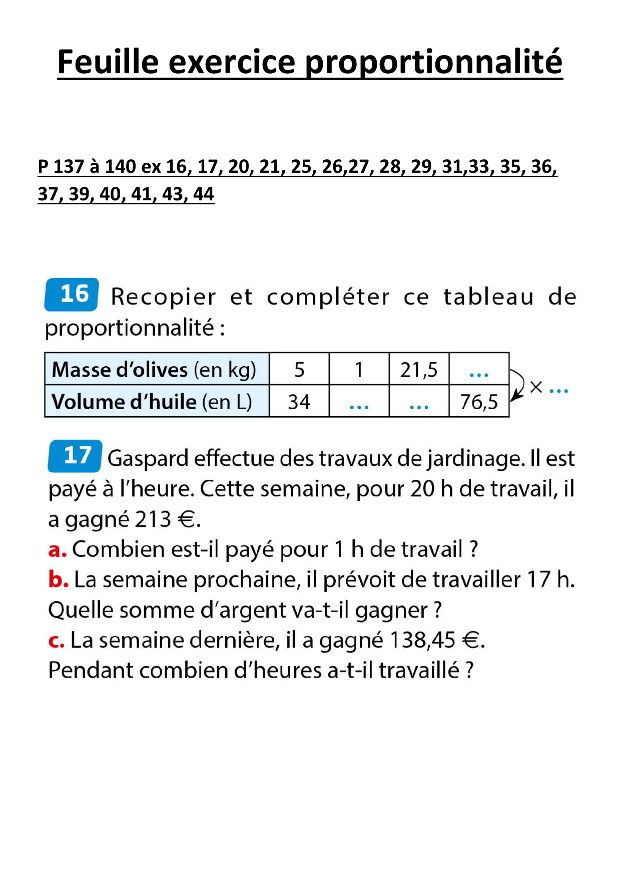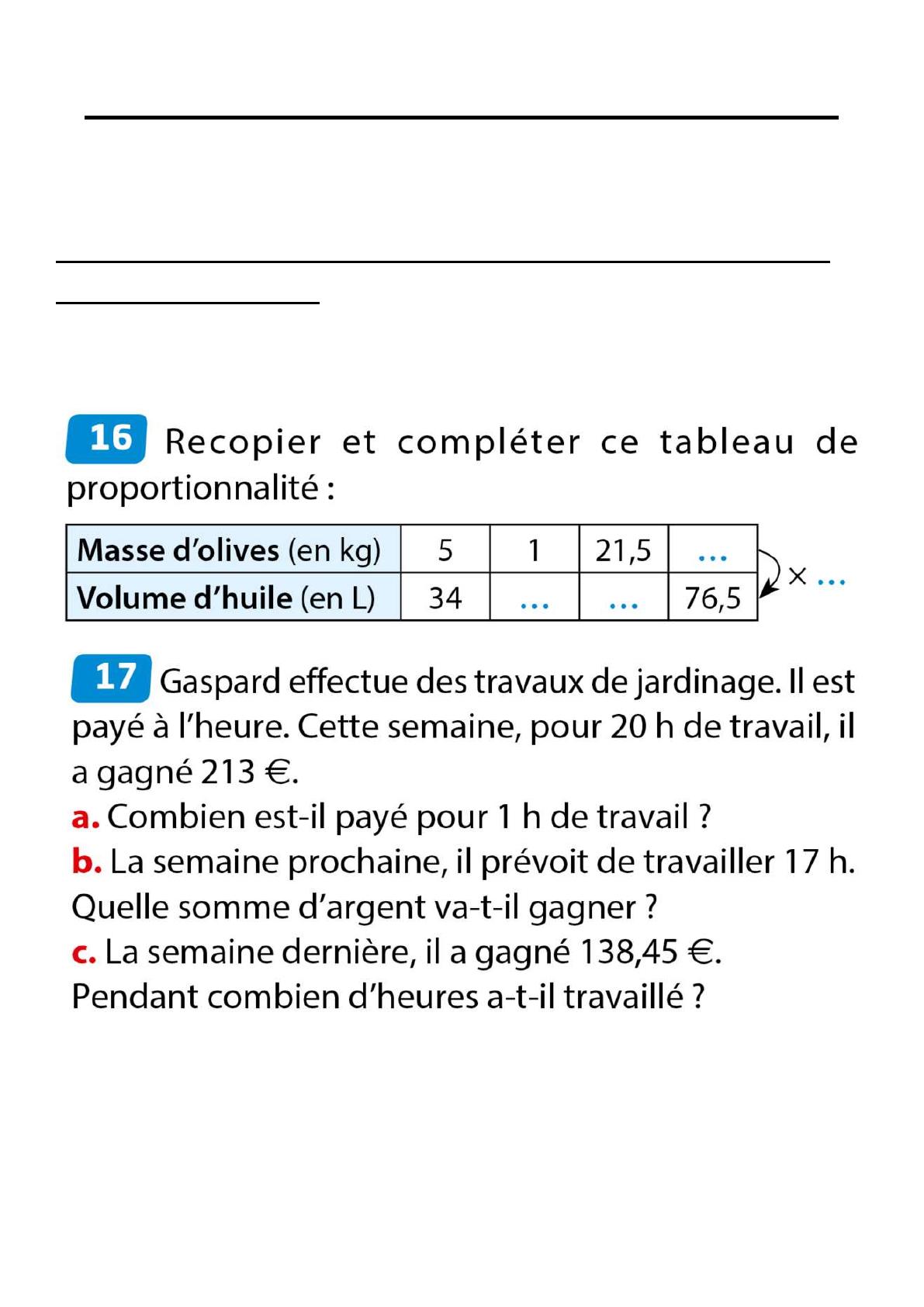 Feuille exercice proportionnalité