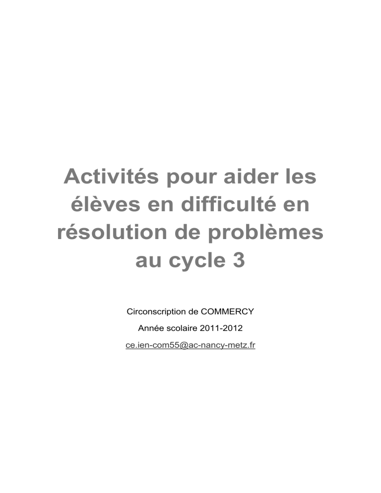 Aider les élèves en difficulté en résolution de problèmes au cycle 3