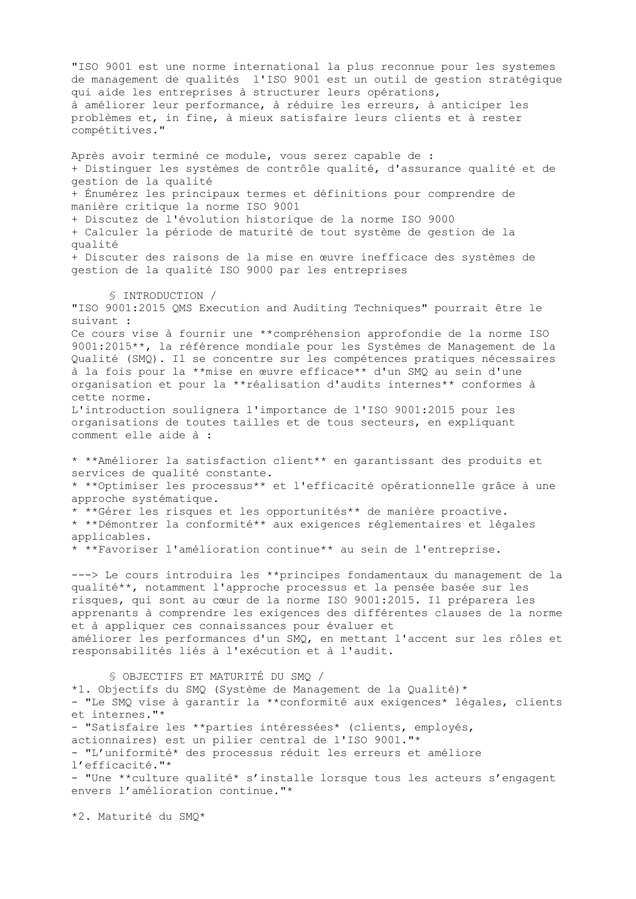 la gestion des risques et la conformité. L'ISO 9001 est la norme la plus