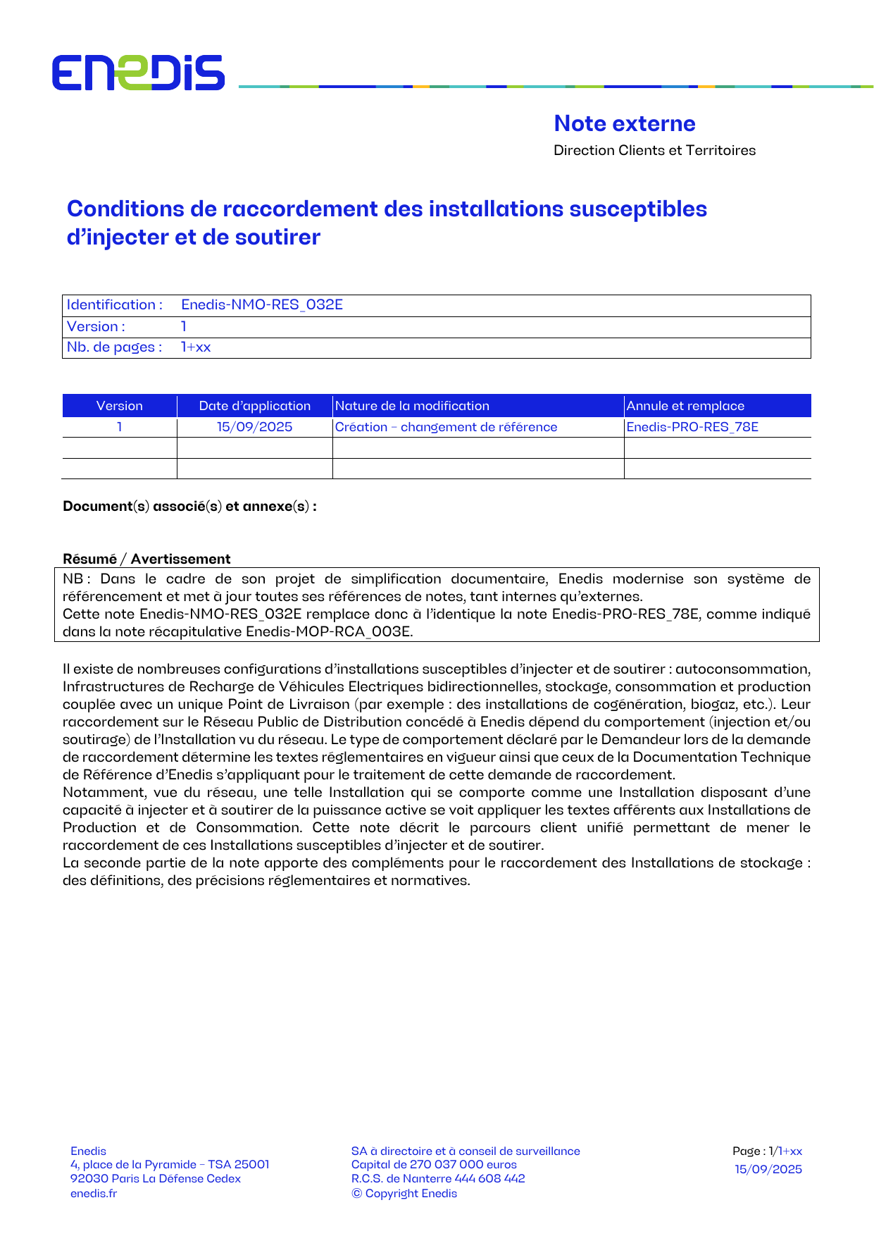 Conditions de raccordement des installations susceptibles d’injecter et de soutirer