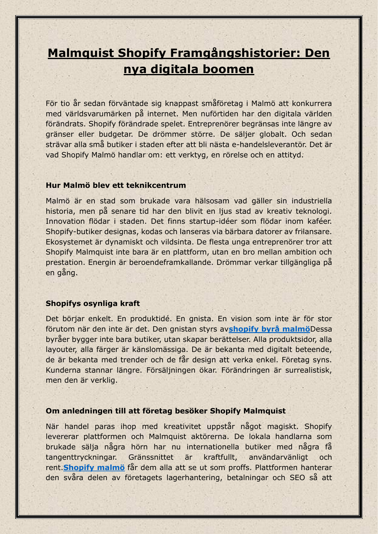 Shopify Malmquist inte bara är en plattform, utan en bro mellan ambition och