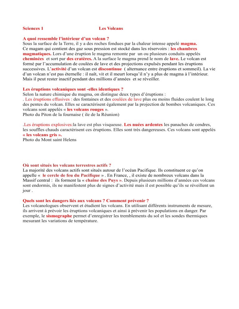Sciences 1 Les Volcans