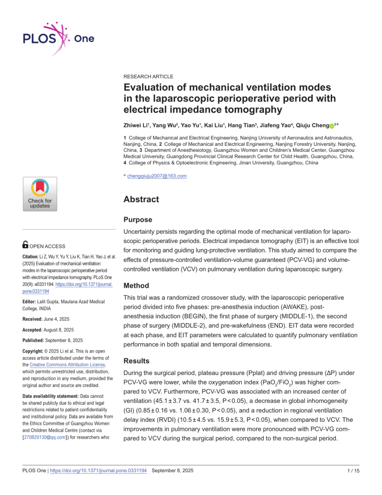scopic perioperative periods. Electrical impedance tomography (EIT) is an effective tool