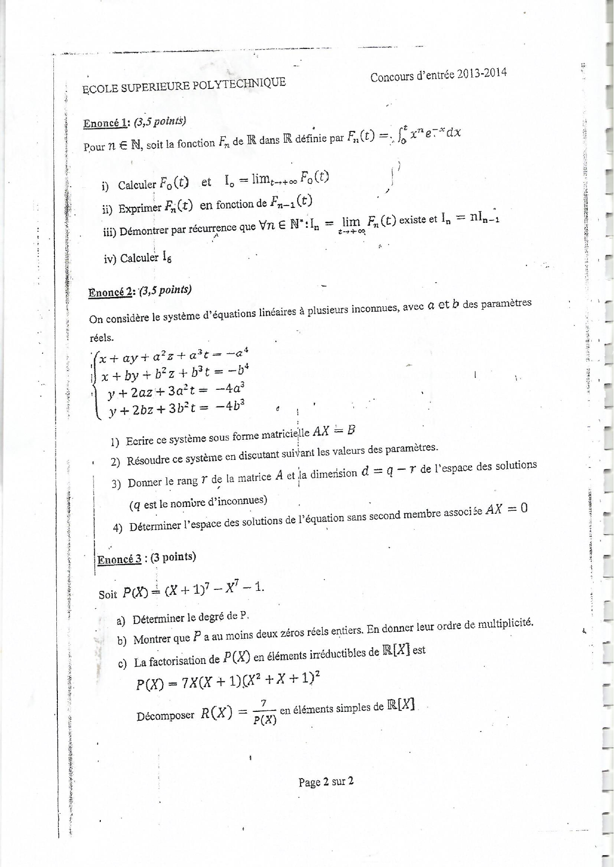 Concours d'entrée Polytechnique 2013-2014: Mathématiques
