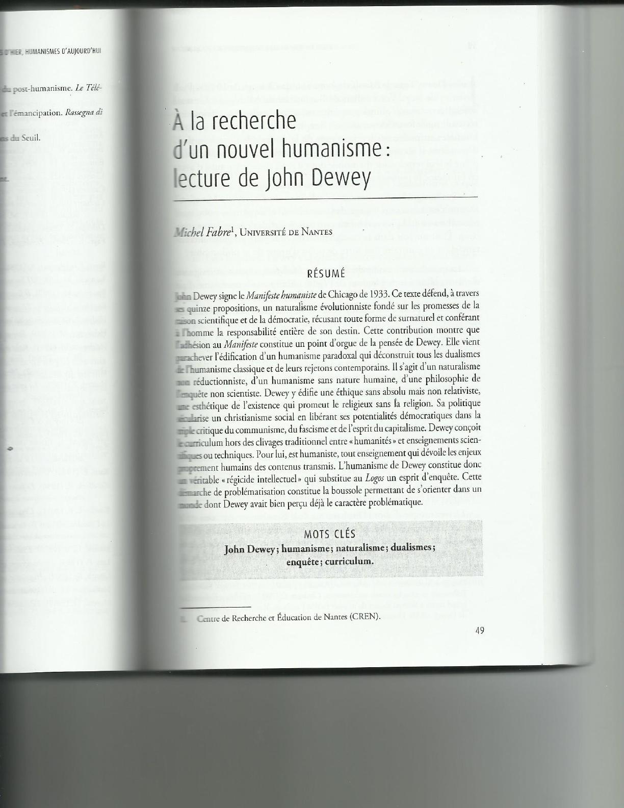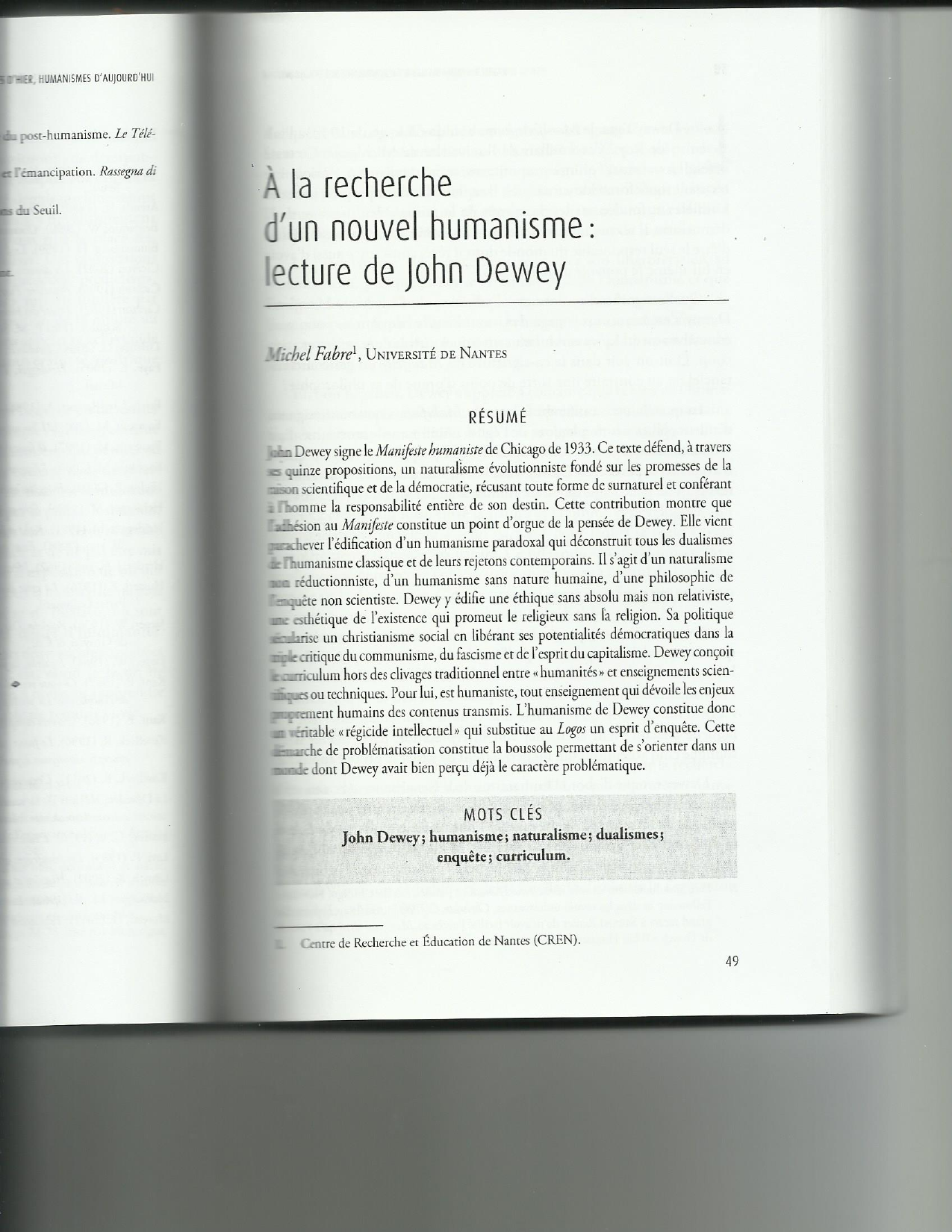 À la recherche d'un nouvel humanisme: lecture de John Dewey