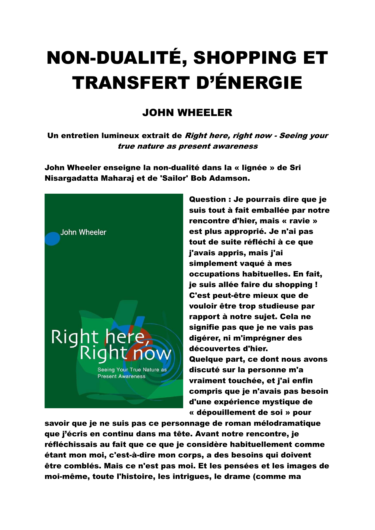 Tout au long de vos séances sur la non-dualité, j'ai petit à petit