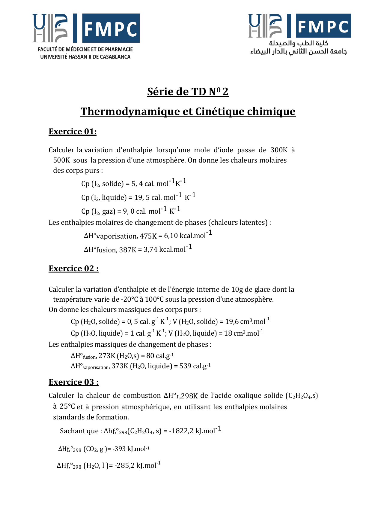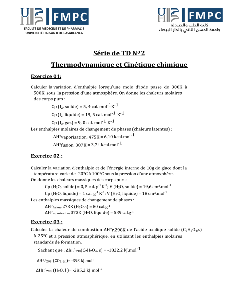 1. Calculer son enthalpie standard de réaction ∆H°r,298