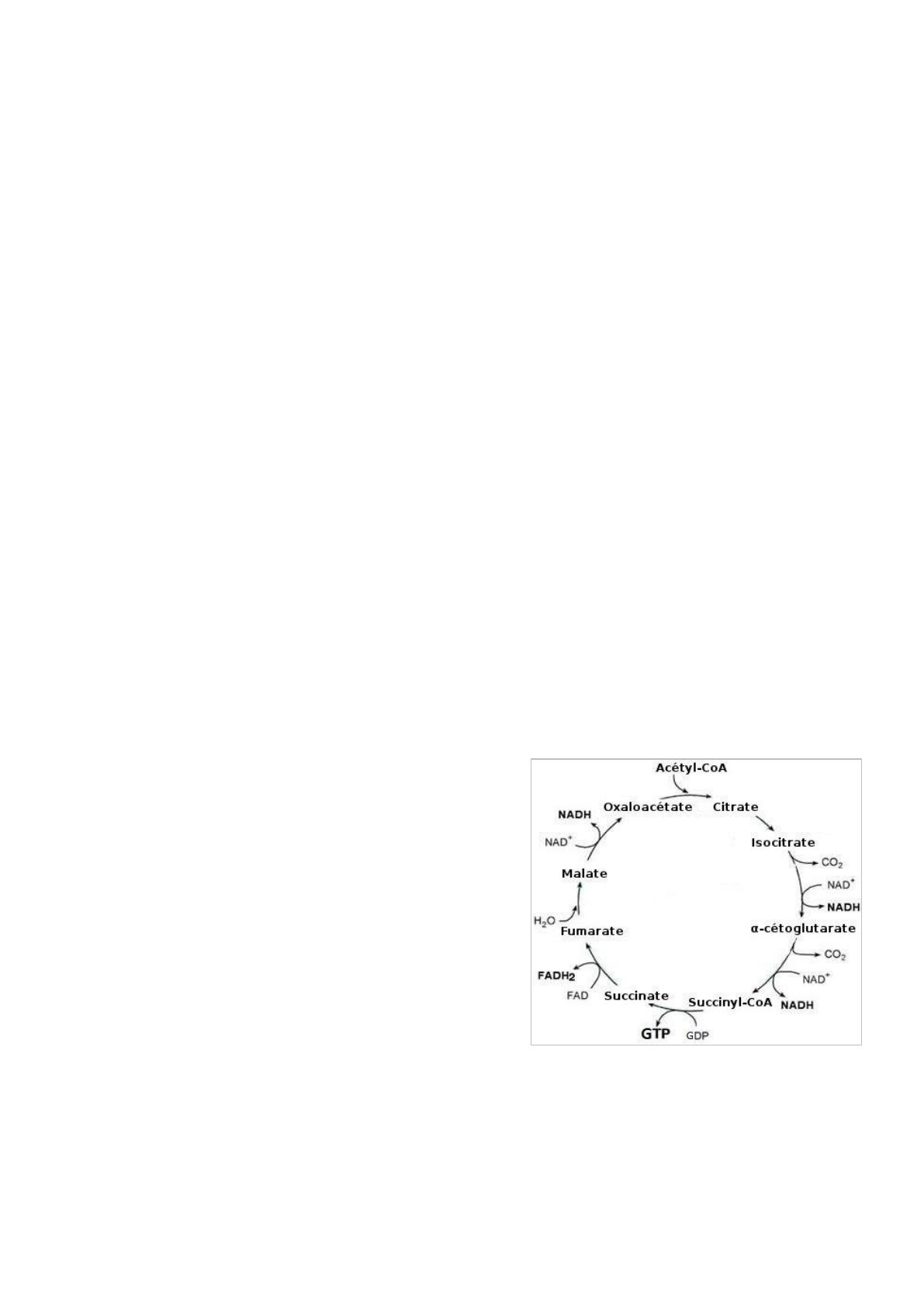 réactions du cycle de Krebs productrices