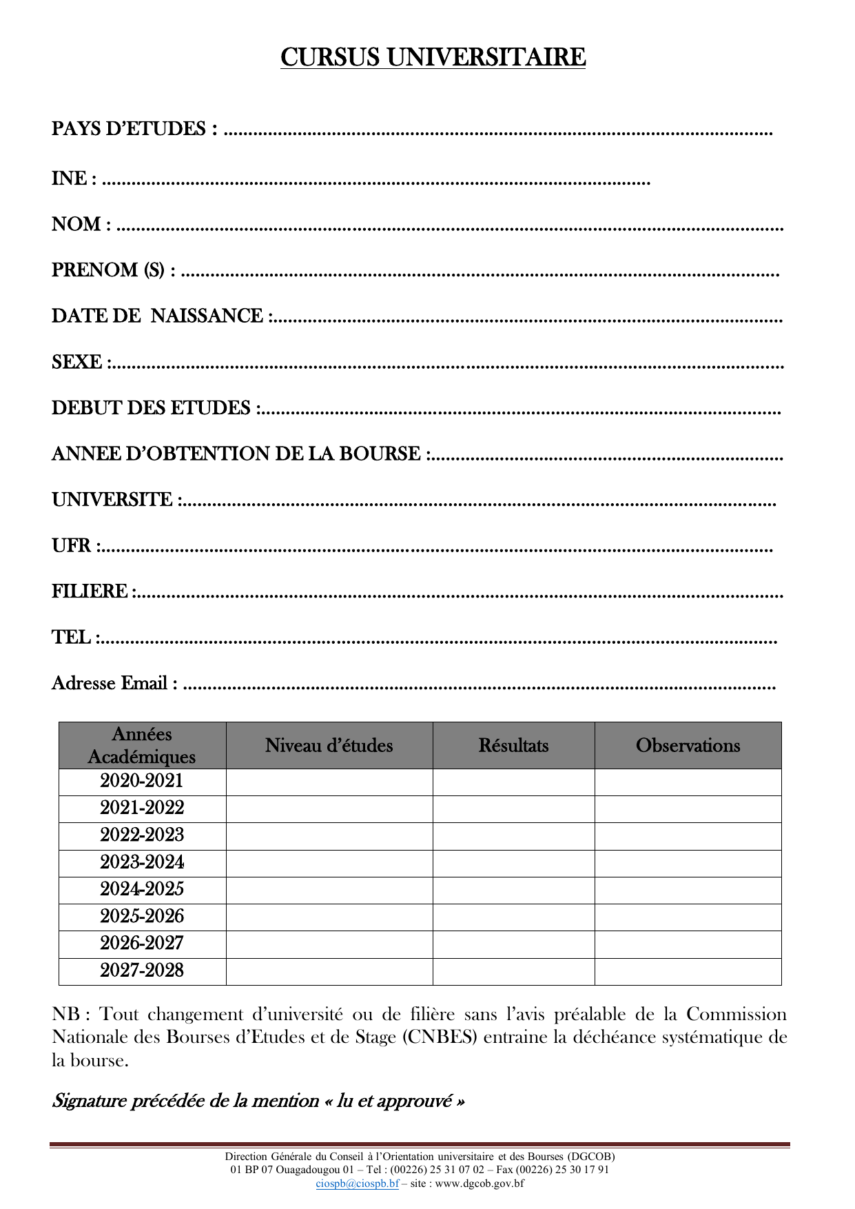 ANNEE D’OBTENTION DE LA BOURSE :………………………………………………………………