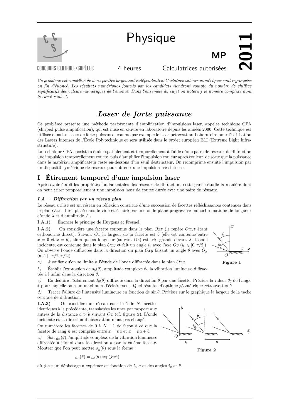 Centrale Physique MP 2011 : Laser de forte puissance