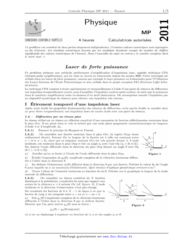 Centrale Physique MP 2011 — Énoncé 1/5