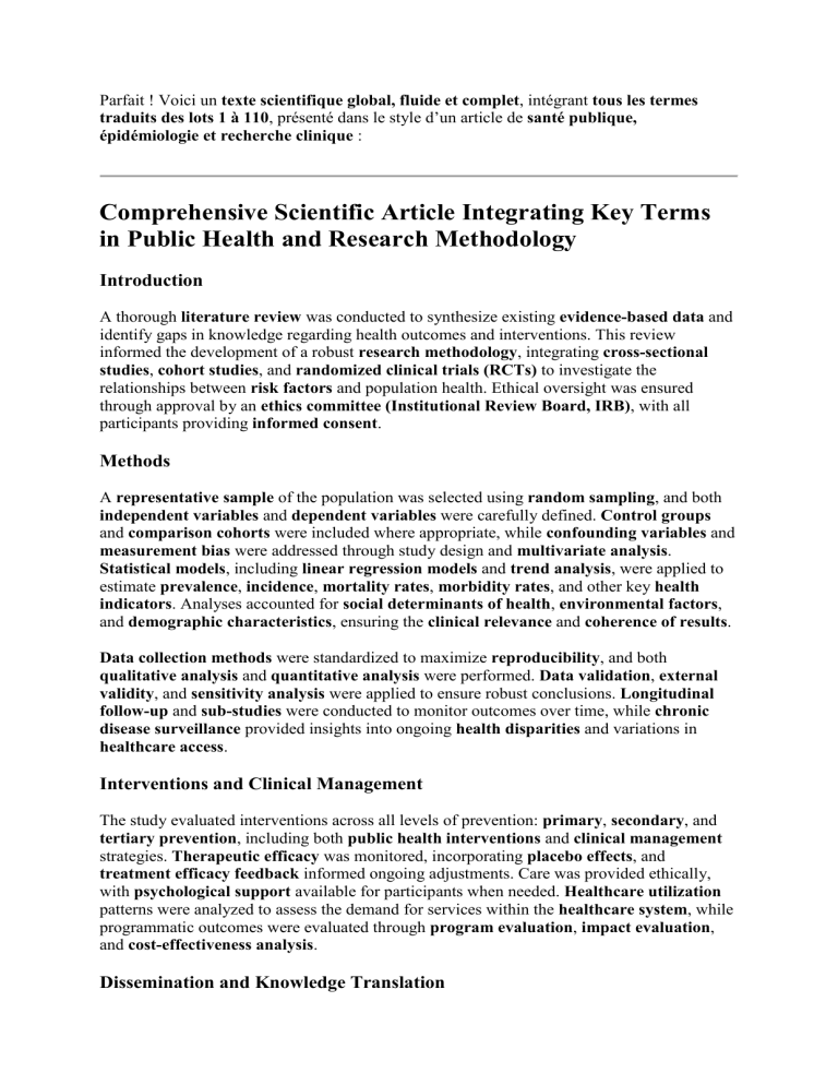 randomisés (ECR) pour étudier les relations entre les facteurs de risque et la santé des
