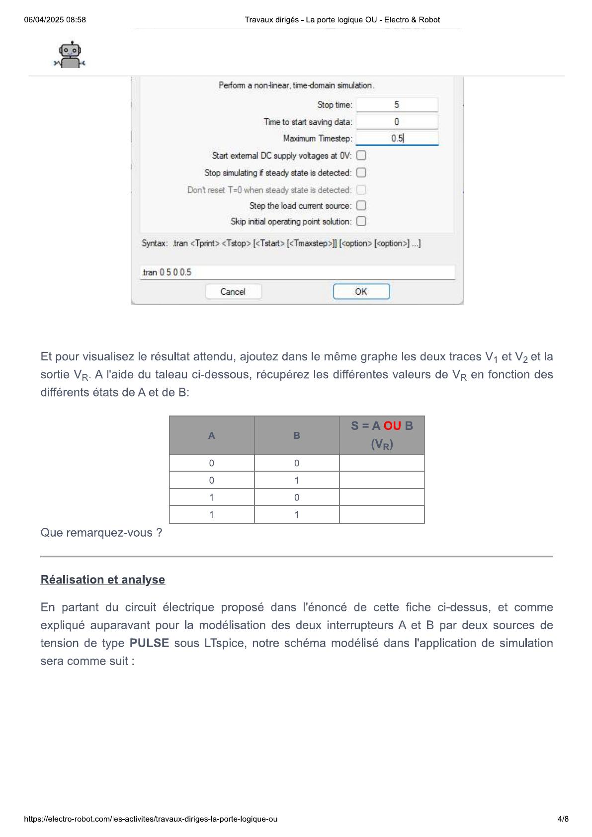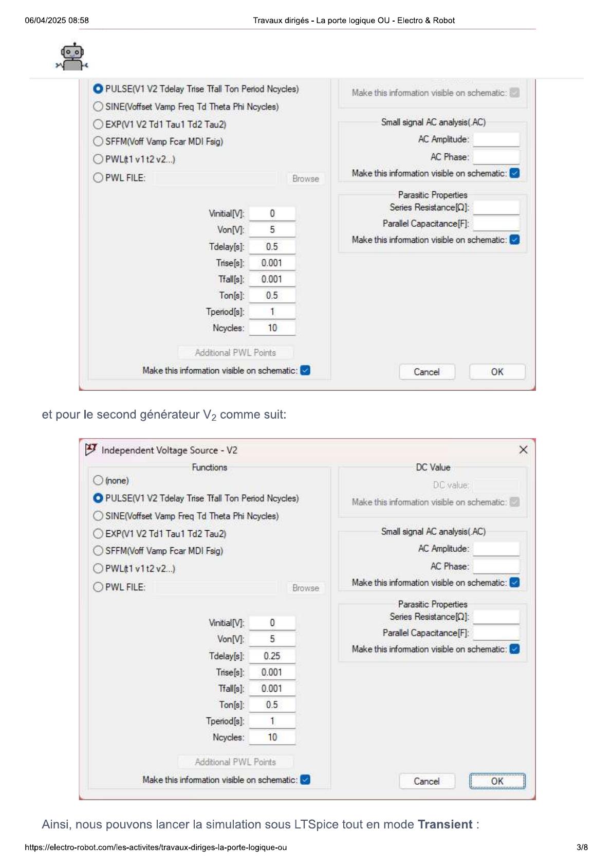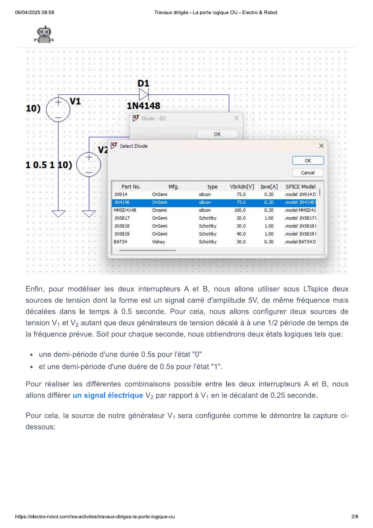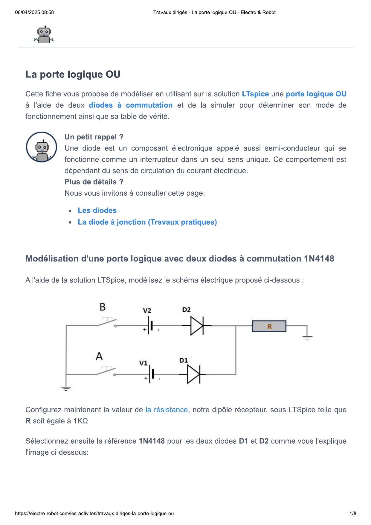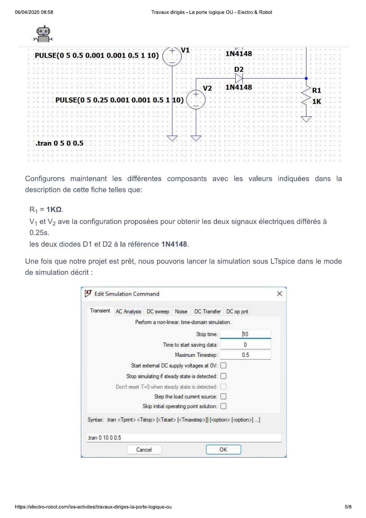 Modélisation Porte Logique OU avec Diodes et LTspice - Travaux Dirigés
